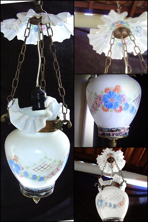 altura total de 47 cm (com as correntes); diâmetro de 16 cm
